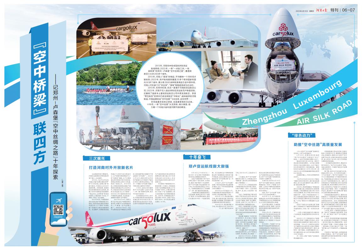 【河南日報】“空中橋梁”聯四方———記鄭州-盧森堡“空中絲綢之路”十年探索