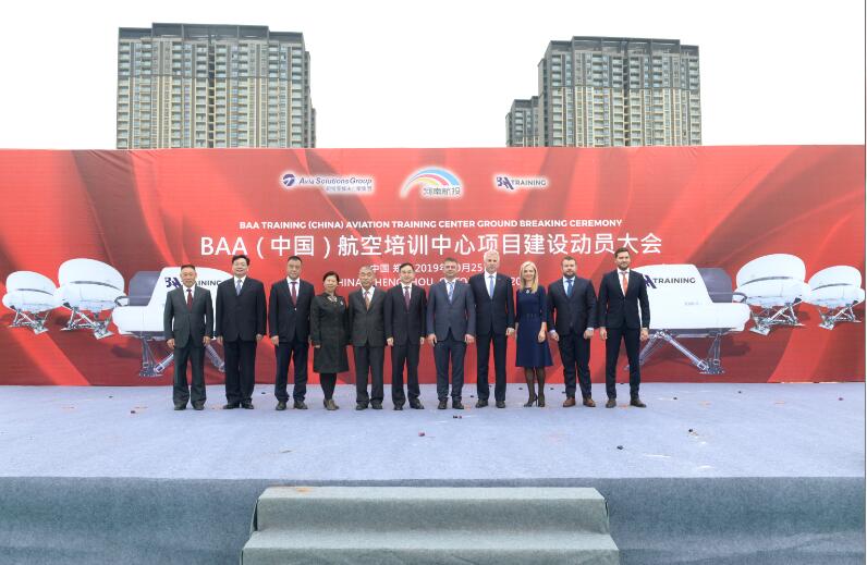 10月25日上午,BAA(中國)航空培訓(xùn)中心項(xiàng)目建設(shè)動(dòng)員大會(huì)在航空港區(qū)舉行。隨著第一鍬土填入基坑,中原首家航空培訓(xùn)中心正式開工建設(shè)。該項(xiàng)目填補(bǔ)了河南省航空培訓(xùn)產(chǎn)業(yè)的空白,進(jìn)一步完善了河南民航產(chǎn)業(yè)鏈條。省外事辦、省財(cái)政廳、鄭州航空港實(shí)驗(yàn)區(qū)管委會(huì)相關(guān)領(lǐng)導(dǎo),河南航投黨委書記、董事長張明超,總經(jīng)理、黨委副書記、副董事長劉建葆;立陶宛阿維亞解決方案集團(tuán)董事長格迪米納斯,立陶宛阿維亞解決方案集團(tuán)董事維加烏達(dá)斯,立陶宛B(yǎng)AA Training總經(jīng)理艾格,阿維亞融資租賃(中國)有限公司總經(jīng)理托馬斯,BAA(中國)航空培訓(xùn)中心總經(jīng)理奧維馬斯共同為項(xiàng)目培土奠基。