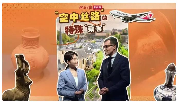 盧森堡國家考古、歷史與藝術博物館館長米歇爾·波費爾在接受河南媒體采訪時表示,“盧森堡與河南(鄭州)的貨運直航對我們雙方來說都是一個很大的優勢,文物無需在中途作任何停留或換乘就可直接到達河南,方便了許多。2018年,河南的文物到盧森堡也是如此?!彼匾膺x擇站在鄭盧“空中絲路”國際合作展區前,來表達他對這條絲路的贊嘆之情。